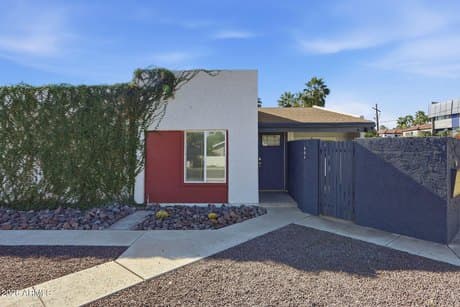 Beautiful Midtown Phoenix home featuring a modern kitchen and laminate flooring throughout. Step inside to a bright, welcoming interior highlighted by soaring vaulted ceilings and an open-concept living and dining area that feels both spacious and comfortable. The kitchen showcases contemporary cabinetry, sleek countertops, and an electric range--creating a stylish and functional heart of the home. The home offers two bathrooms, including a private en-suite in the primary bedroom for added comfort and convenience, as well as a full guest bathroom thoughtfully positioned for everyday living and visitors. Enjoy Arizona's indoor/outdoor lifestyle with two private patios, perfect for entertaining or relaxing evenings outdoors. Ideally situated near downtown Phoenix, popular dining and nightlife, sporting venues, freeway access, and Sky Harbor Airport, this home offers exceptional convenience in a prime Midtown location. Agent owner.