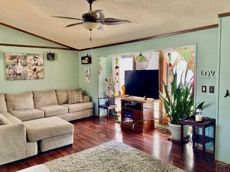 You won't find a better deal than this. Priced to sell, this well-maintained 2 bedroom, 2 bathroom modular home offers comfort, space, and value. Located in a beautiful neighborhood just outside of the Domega Homes area, this property sits on a large yard that you own, giving you space, privacy, and added value. The yard also features two sheds and plenty of room to enjoy the outdoors. The bright sunroom adds extra living space, and the open floor plan creates a spacious, welcoming feel from the moment you walk in. Parking is plentiful with a 30 x 15 carport and additional space. Conveniently located just 4 miles from Pueblo Reservoir, you can enjoy recreation while still being close to town. The home also features a high-efficiency forced air gas furnace and central air. For added peace of mind, the seller will install a new dimensional shingle roof at closing. This home checks all the boxes at an incredible price. Schedule your showing today before it's gone.