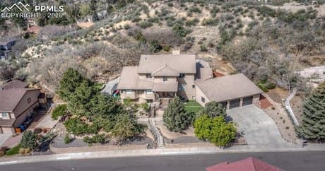 Welcome to your own custom-built private sanctuary, perfectly situated on a large, private lot offering exceptional luxury, privacy, and breathtaking city and mountain views. This completely professionally remodeled and updated home is a rare opportunity for elegant living with incredible multi-generational potential. Professionally landscaped front, back, and side yards create a stunning outdoor setting, complete with new front decking, a fenced area, a spacious 20x12 second patio, and an oversized attached three-car garage. The backyard features a private staircase with direct access to the Sunset Mesa trails, allowing you to enjoy gorgeous panoramic views of Colorado Springs and the surrounding mountains right from your own property. Inside, a grand foyer welcomes you into a thoughtfully designed floor plan featuring a spacious home office suitable for two. The gourmet kitchen is truly a chef's dream, showcasing custom cabinetry, quartz countertops, a built-in double refrigerator, an eight-burner gas stove, a large center island, and a wine refrigerator. The adjacent dining area features a beautiful bay window overlooking the backyard and offers seamless access to outdoor entertaining with two walkouts-one leading to a covered seating area and the other to the garage entry. The main-level mudroom includes one of two laundry areas, custom tile flooring, and a convenient half bath. The formal living room is warm and inviting with a cozy gas fireplace and two additional walkouts for effortless indoor-outdoor living. The luxurious primary suite offers a private sitting area with one of six fireplaces, a large walk-in closet, a spa-inspired shower, and private outdoor access. Two additional bedrooms and a full bath complete the main level. Upstairs, a bright and versatile flex space offers abundant natural light, generous storage, and a gas fireplace, along with a private bedroom and adjoining 3/4 bath-perfect for guests or extended family. The basement is ideal for multi-generational living, featuring its own private entrance, full kitchen, laundry room, seating area, inviting fireplace, and a tranquil five-piece bath. Additional living space, another full bath, and an additional bedroom provide even more flexibility. Behind a concealed bookcase door, discover a private theater room, or relax and rejuvenate in your own infrared sauna. With two kitchens, two laundry areas, six fireplaces (three gas and three electric), abundant living space, and unmatched privacy throughout, this home offers a truly exceptional lifestyle. Conveniently located near Norwood Recreation Center, residents enjoy access to amenities including a pool, tennis courts, and outdoor grilling areas. This extraordinary property is the perfect multi-family home and a must-see opportunity.