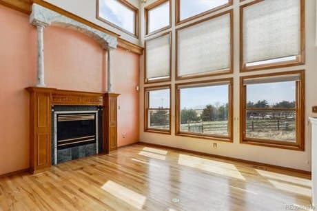 SELLER OFFERING 5K in CONCESSIONS FOR BUY DOWN RATE. Charming listing in Peyton! This home was once named the Parade of Homes Peoples Choice Award. It was the model showcase home when built. Generous rooms with lots of natural light shining in. Main floor includes office space, laundry, and vaulted family room with a wall of windows. Kitchen holds ample cabinet storage and walk in pantry. Formal dining and living space also located on main level. Beautiful hardwood floors throughout. The second floor open hallway features a peaceful bonus space with outside balcony to enjoy your Mountain Views. Spacious Primary bedroom includes a wood stove and en suite full primary bath. Walk in closet is quite large with adequate shelving. Two additional bedrooms with vaulted ceilings and one full bath complete the second floor layout. The basement offers a wet kitchen with Granite tile countertops, wine fridge, and dishwasher. Enjoy movies, sports, or your favorite shows in the Theatre room (TV and Speakers stay). The hutch in basement living room leads to a secret storage room. 4th conforming bedroom located in the basement. Bonus upgrade - roof has hail impact shingles. Over 1/2 acre lot with fenced in back yard for your pets and kids. Three car attached garage and side shed. Falcon Middle School visible and accessible from property backyard. Elementary and High School conveniently located. Dont miss your opportunity to own this great property surrounded by Colorado views.