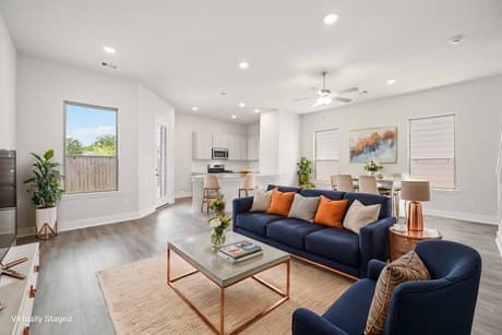 This three-bedroom, two-bathroom floorplan is a dream. On the main floor, enjoy a seamless connection between the kitchen and living area, creating a functional and inviting space for daily activities and entertaining. Upstairs, the owner's suite features a large bathroom and walk-in closet with option to upgrade to a luxury bath and shower. Outside, two covered patio options offer a shaded area where you can enjoy the fresh air and spend time relaxing or gathering with friends and family.